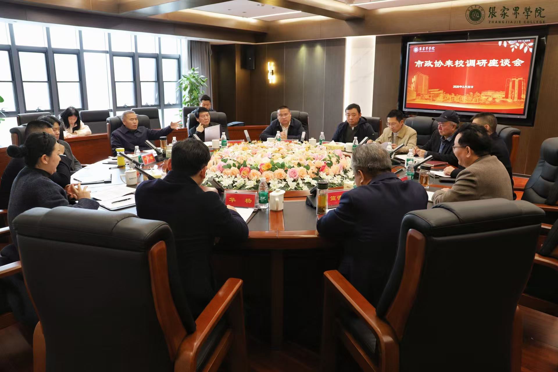 3月20日下午,张家界市政协党组书记、主席杨广林一行来我校调研,并于望岳楼明志厅开展座谈会,围绕学校发展建设、人才培养、校地合作等工作开展深入交流。会议由我校党委书记王宾吾主持。