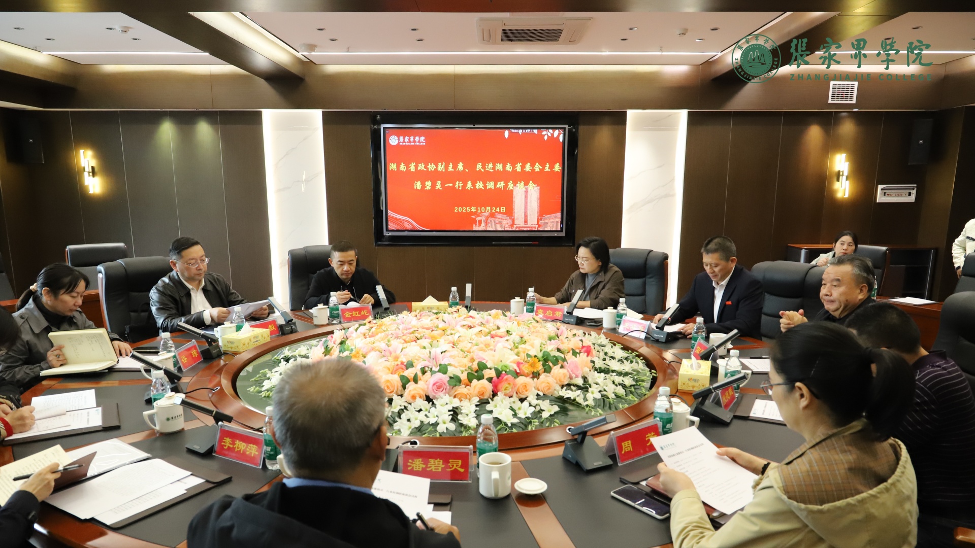 10月24日下午,湖南省政协副主席、民进湖南省委会主委潘碧灵率调研组来我校开展调研,并于望岳楼明志厅召开座谈会。民进湖南省委会二级调研员李柳萍、组织处四级调研员张媛,张家界市委统战部常务副部长张德献、干部党派科科长金虹屹,市人大副主任、民进张家界市委会主委周芳及市委会专职副主委彤毅、副主委谷琼,张家界学院校长简德彬、党委书记王宾吾,副校长袁启君,党政办公室主任华杨、宣传统战部副部长李洁,民进吉首大学支部主委傅芳、委员刘奎宏参会。
