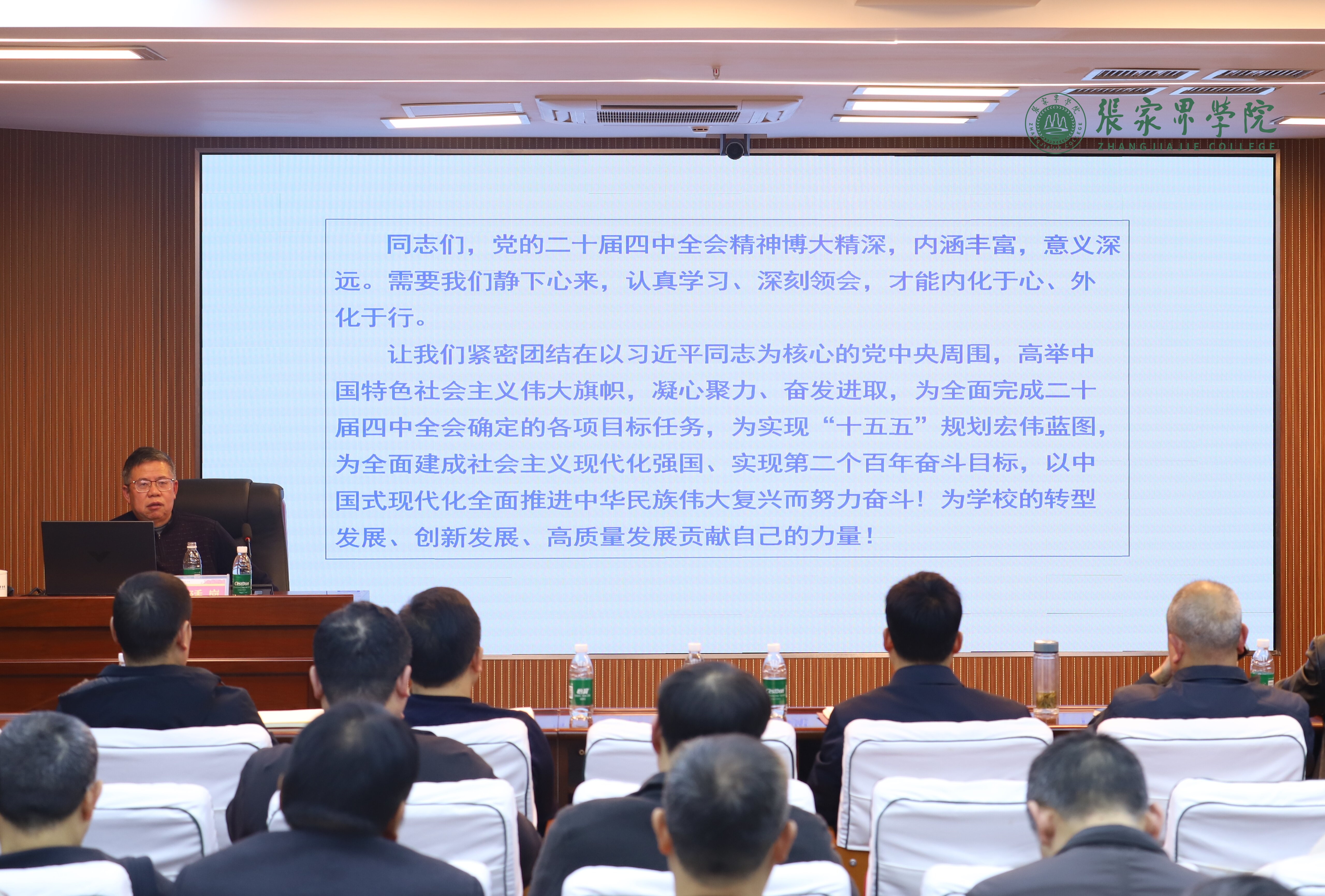 本网讯(学生记者 陈琼)深学笃行党的二十届四中全会精神,奋力开创中国式现代化建设新局面。11月26日,学校党委组织开展党的二十届四中全会精神专题学习,马克思主义学院(法学院)学科带头人朱廷岚教授作学习辅导报告,在家校领导及中层干部参加学习。本次学习会由校党委书记王宾吾主持。